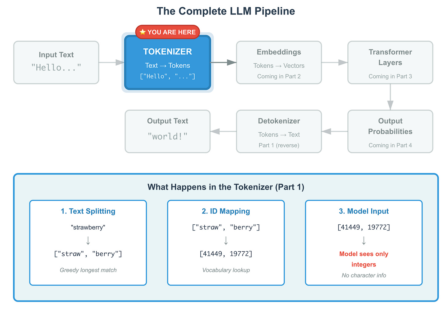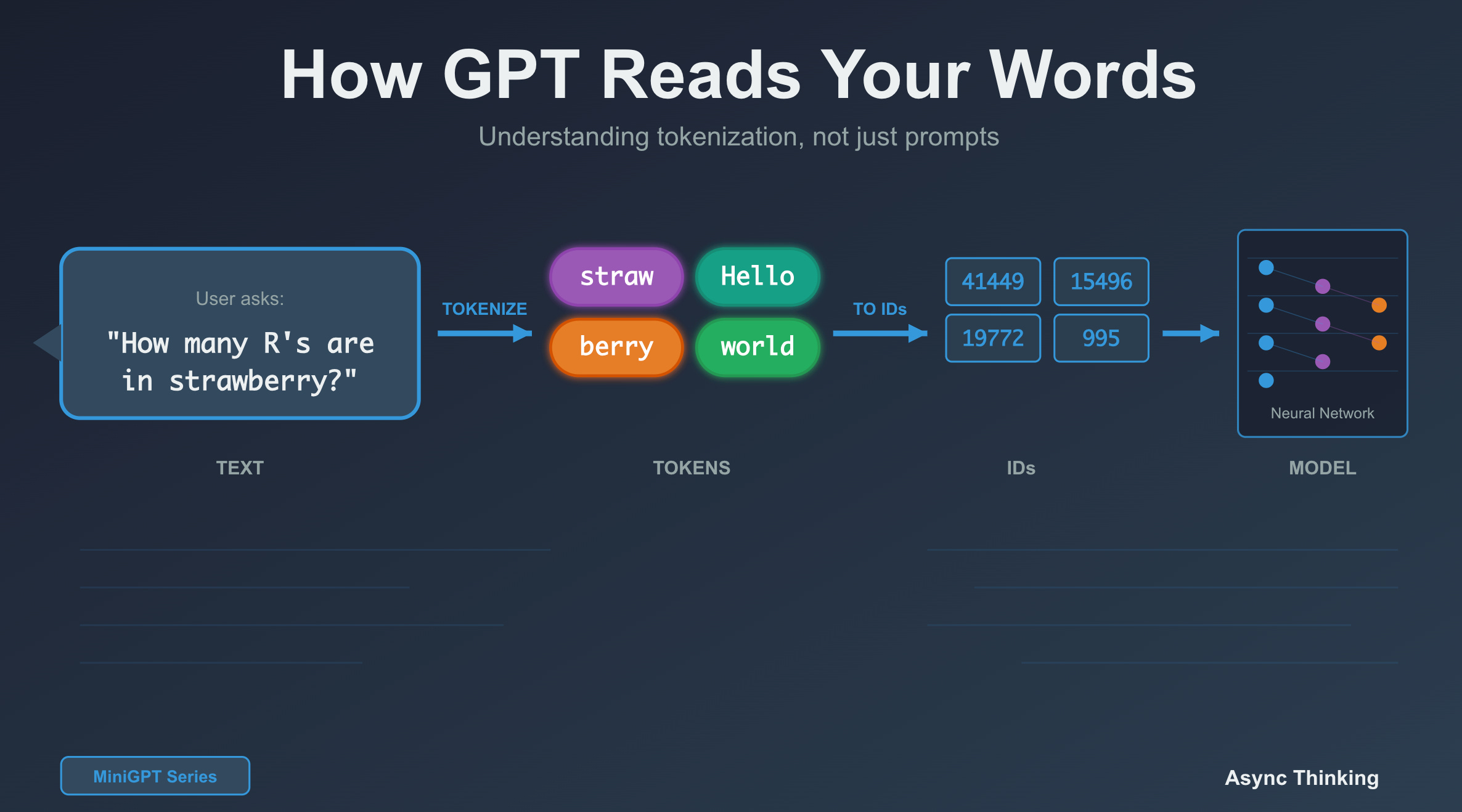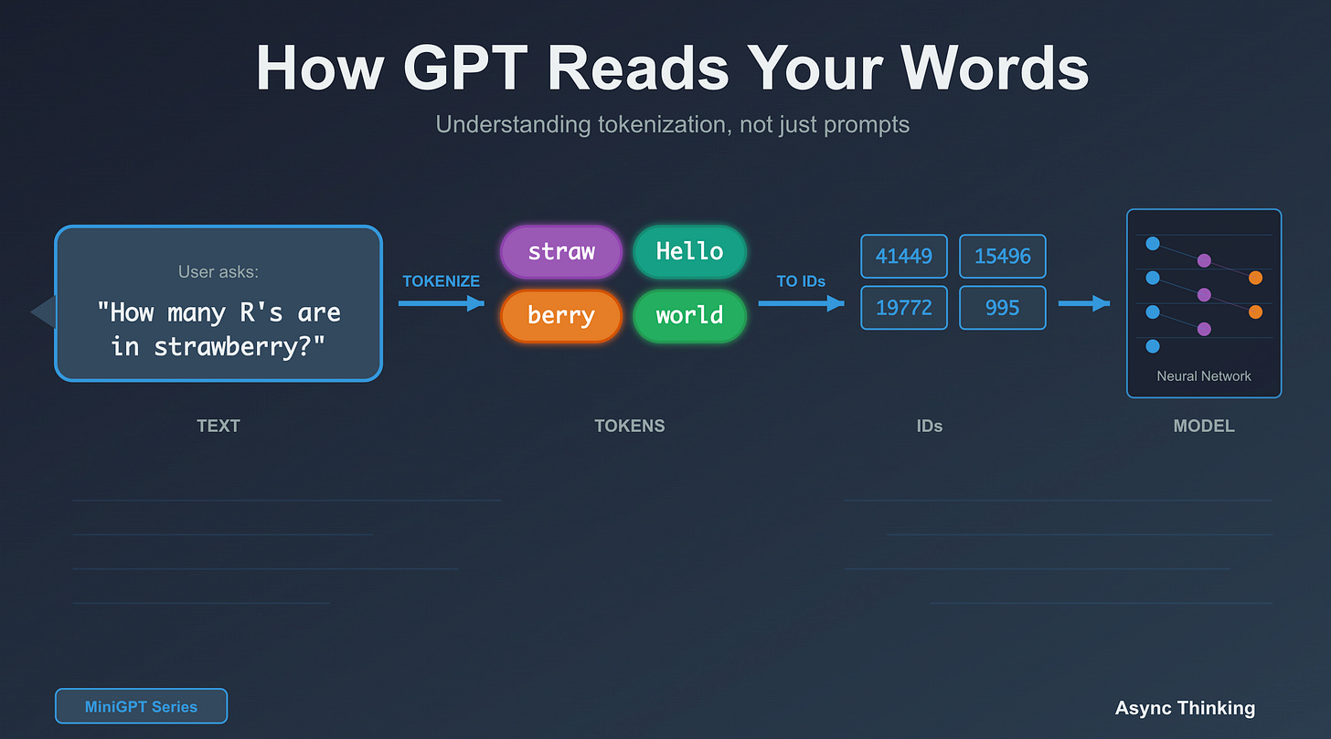 GPT doesn’t see letters; it sees tokens (subword chunks). “strawberry” becomes [”straw”, “berry”], which is why counting R’s is hard. This single design choice explains mysterious behaviours, API costs, and why your prompts sometimes get truncated. Understanding tokens is now as fundamental as understanding databases for anyone building with LLMs.
